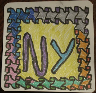 And here is my niece’s. She was born in New York and currently lives there. She did the cadent tangle from the previous challenge as she said it looks like train tracks which are near her home.